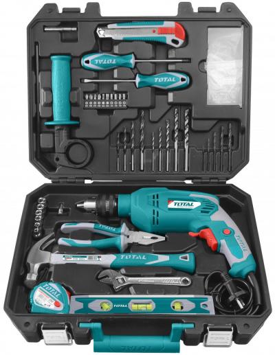 1 buc. Masina de gaurit 650W Tensiune: 220-240V ~ 50 / 60Hz, Mandrină cu cheie de 13mm 1 buc Ciocan cu gheare 8Oz 1 șurubelniță SL5.5 * 100 buc 1 buc șurubelniță PH1 * 100 buc 1 buc. 6 "clești combinate 1 buc 6 cheie reglabilă 1 buc Nivela cu bule 1 buc Banda de măsurare din oțel 3M 1 buc cutter 5 buc Burghiu pentru metal 2,3,4,5,6mm 5 buc burghiu pentur beton 4,5,6,8,10mm 4 bucburghiu pentru lemn 4,5,6,8mm 6 buc 1/4 "" Chei tubulare hexagonale 5mm 6mm 8mm 9mm 10mm 11mm 1 buc adaptor reductie 4-6mm (25mm) 10 buc. Șurubelnițe PH1, PH2, PZ1, PZ2, SL4, SL6, Hex4, Hex5, T20, T25 1 buc Prelungitor biti magnetic 30 buc Suruburi (10 buc * ST3.5, 10 buc * ST4, 10 buc * ST5) 30 buc Conectori din plastic (10pcs * 5mm, 10pcs * 6mm, 10pcs * 8mm)
