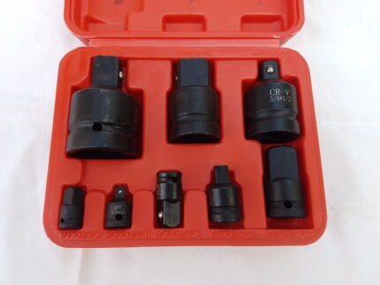 Setul adaptoare de impact 8 buc este confectionat din otel Crom-Molybden (impact) si vine organizat intr-o trusa din plastic dur.