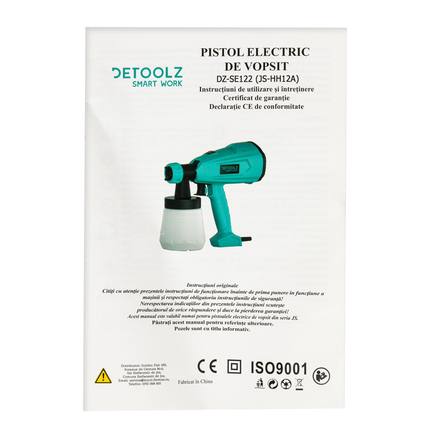Pistolul de vopsit HVLP, 350W, Detoolz DZ-SE122 este destinat folosirii in activitati casnice de vopsire a diverselor suprafete (pereti, mobilier, garduri,etc.). Materialele pe care le puteti aplica cu aparatul de vopsit sunt: lacuri, baituri, uleiuri, vopsele ce contin solventi, vopsele pe baza de apa, grunduri, substante pentru protectia lemnului. Este interzisa aplicarea vopselelor texturate cu acest dispozitiv deoarece se poate infunda duza si deteriora aparatul.