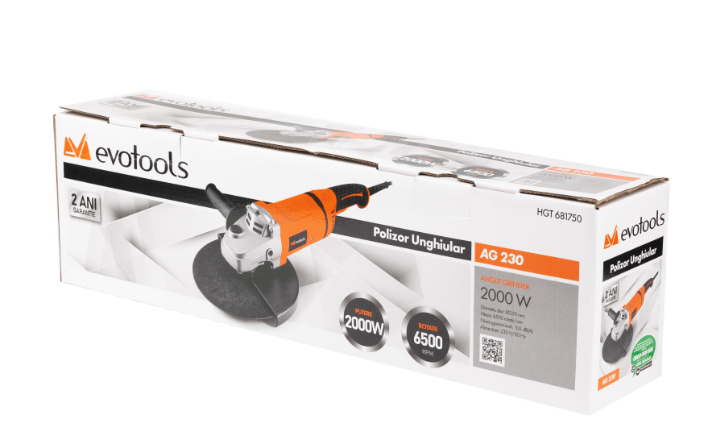 Polizorul Unghiular AG 230 2000W EPTO are un motor de 2000W ce asigura o turatie de 6500 de rotatii pe minut.