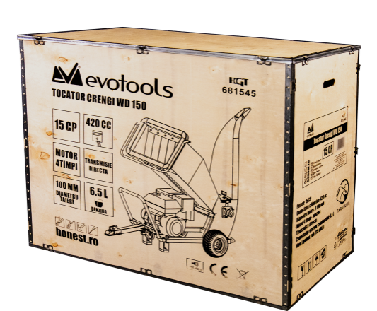 Tocatorul pentru Crengi WD150 cu Transmisie pe Curea este echipat cu un motor puternic in 4 timpi, racit cu aer ce dezvolta o putere de 15 CP si 3600 rpm, avand o capacitate cilindrica de 420 cc.